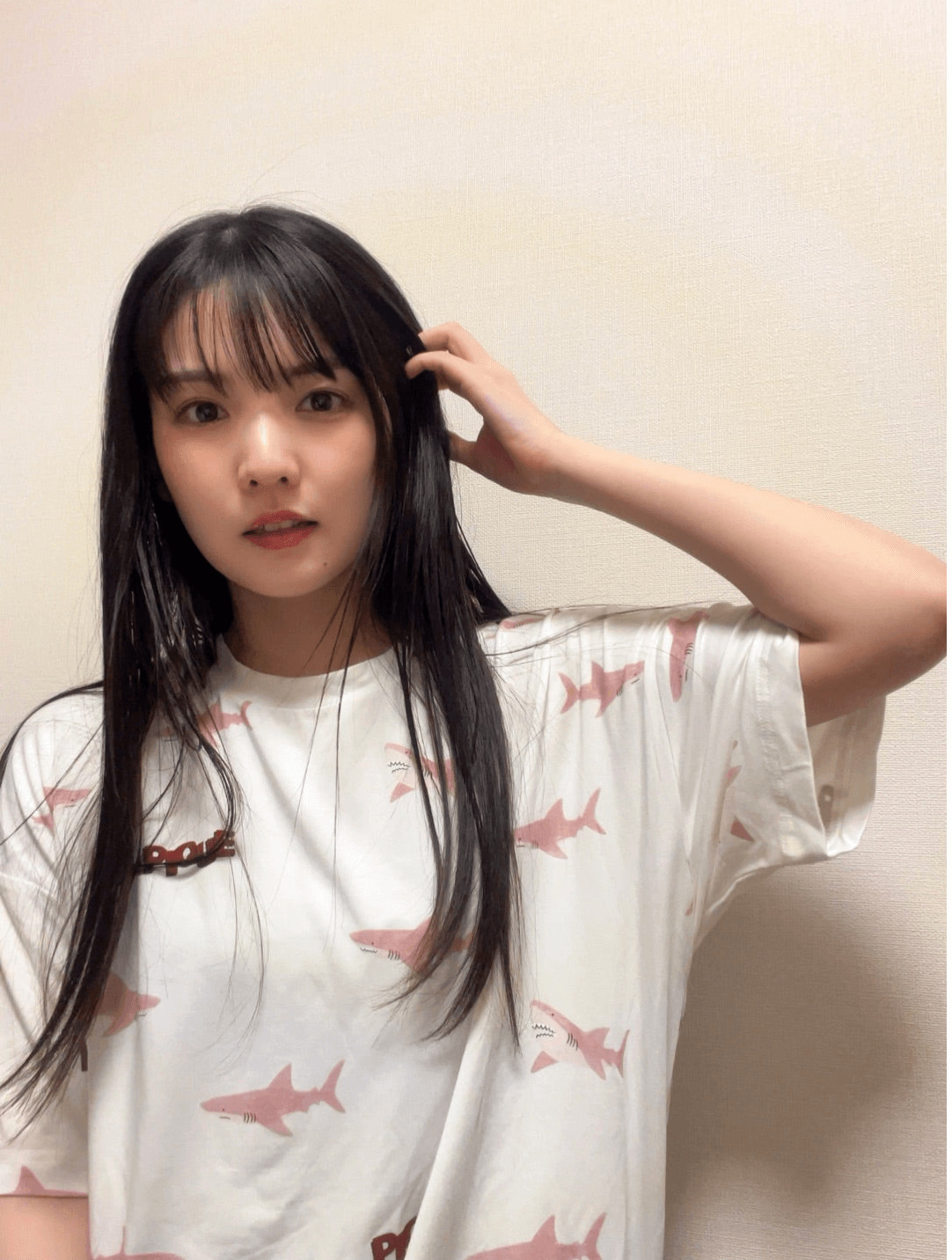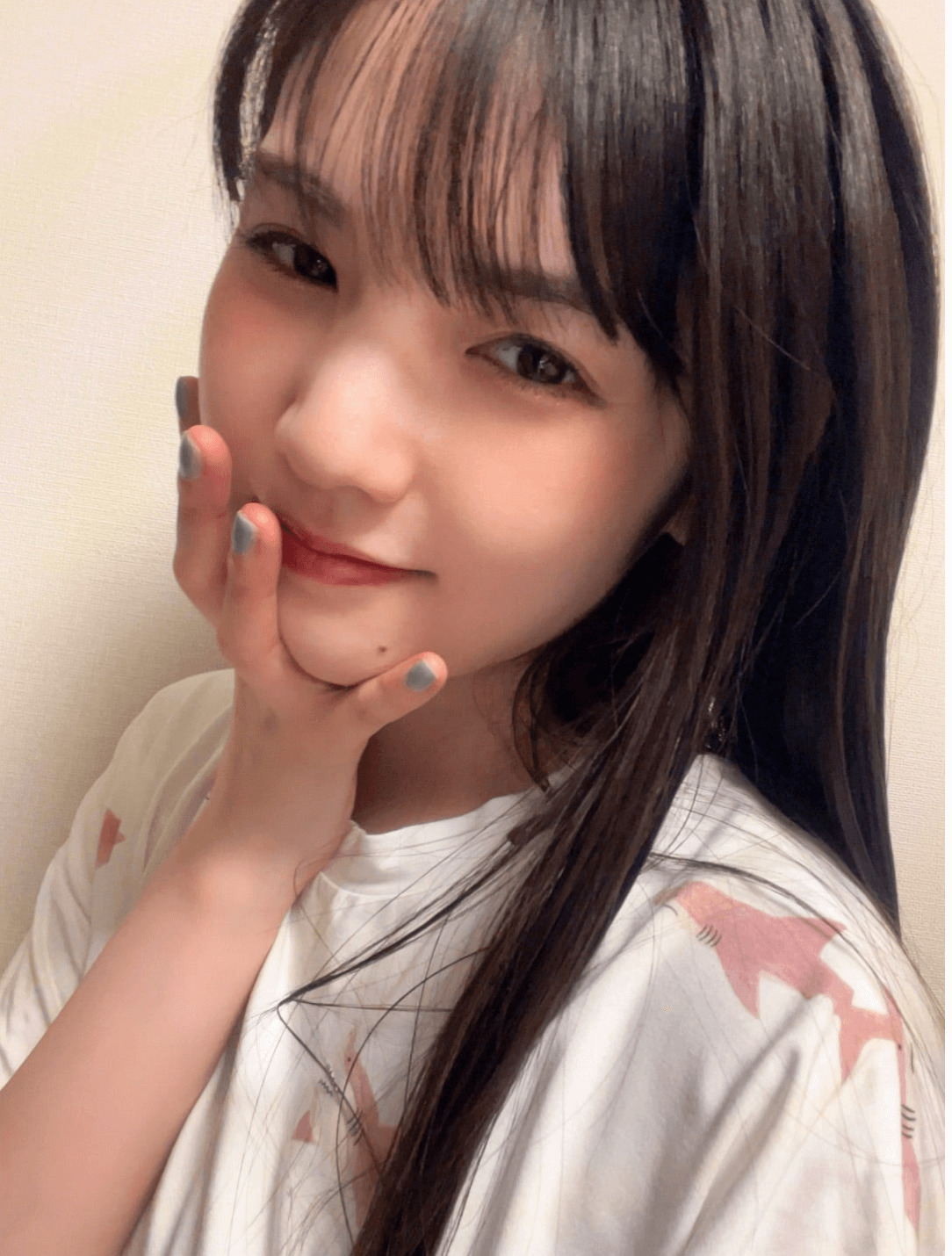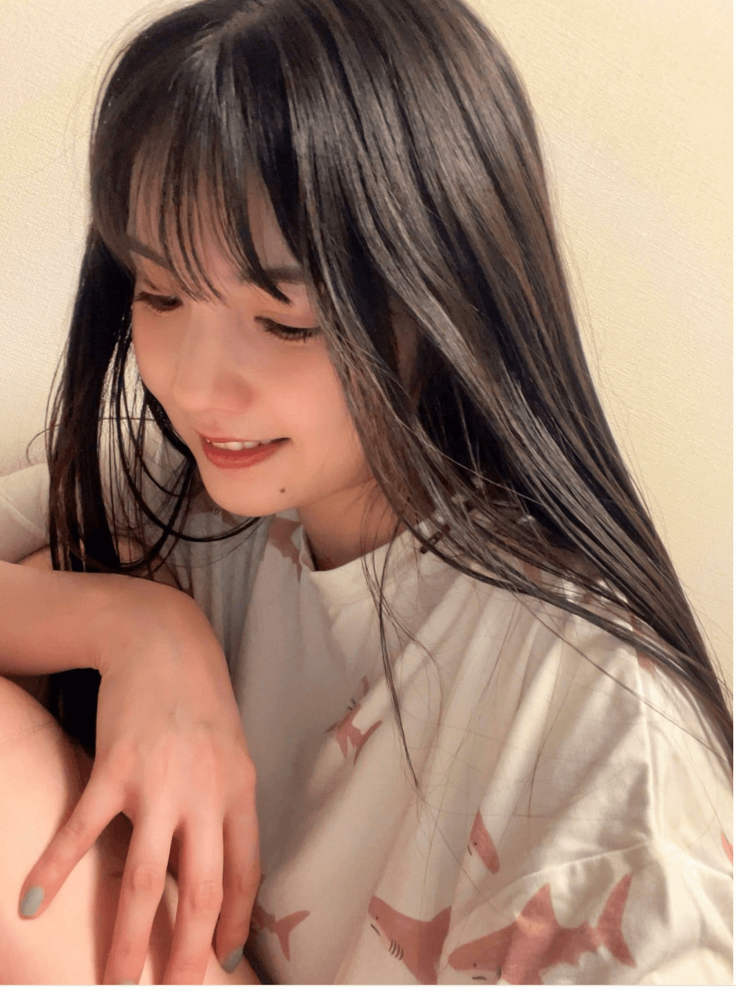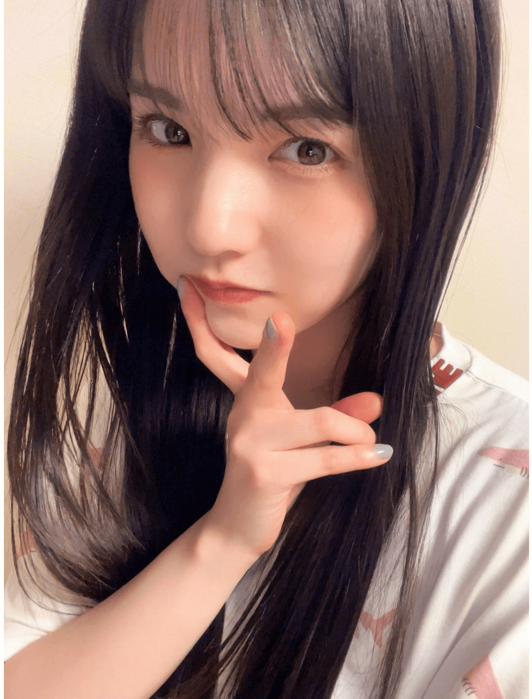 続けて、「あ、写真は、全然、前の、、、自撮りです」「いっぱい撮ってた」「なんか、前に撮ってたけど 載せてない写真って結構あるんよなぁ〜 似たり寄ったりな写真多いけどね!笑」「ラスト!! だけ、すっぴん」と綴ると、すっぴん姿を含めた、ルームウェアの自撮りショットを複数公開した。