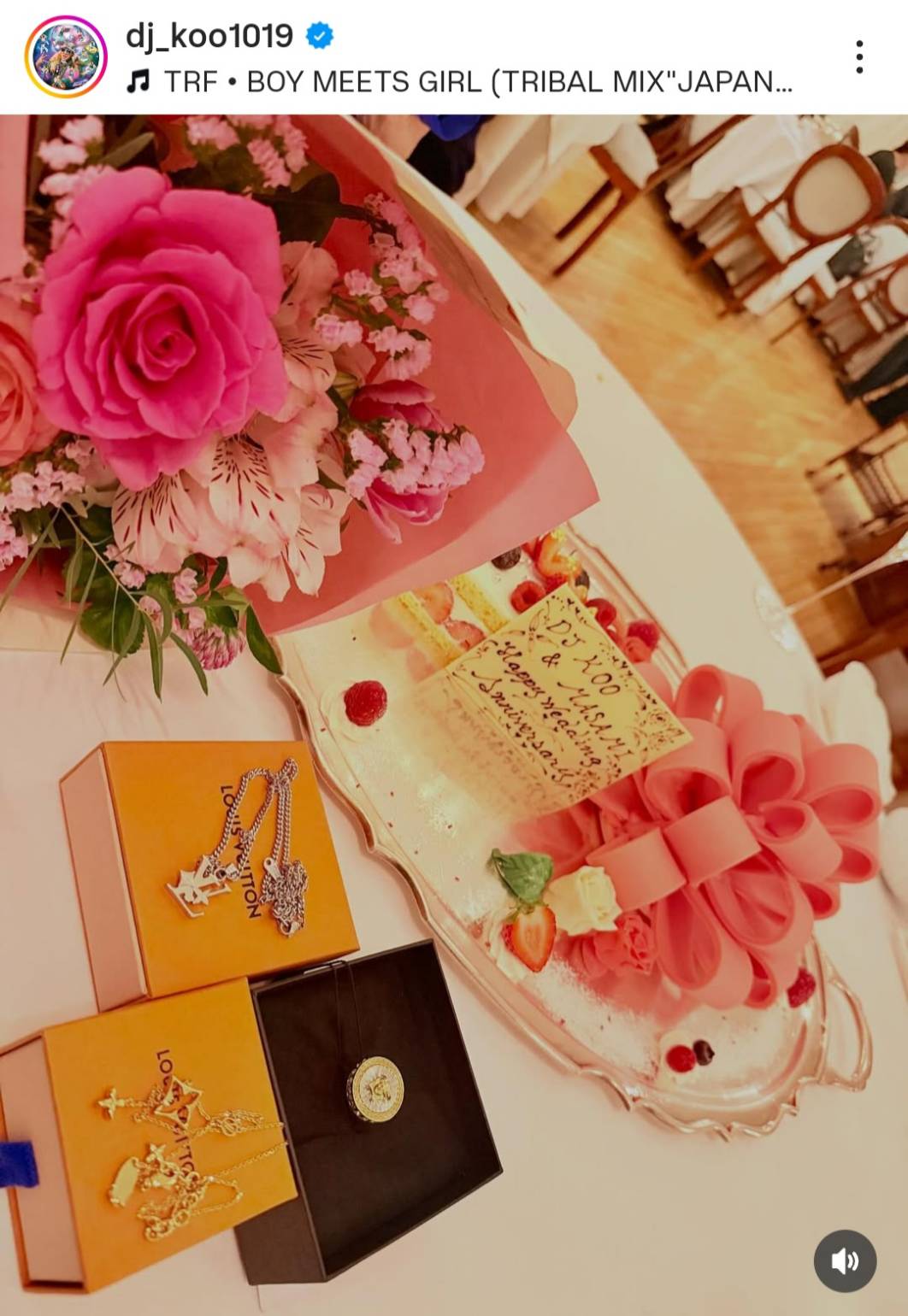 11月11日、TRFのDJ KOOがInstagramを更新。妻との結婚記念日を迎えたことを報告した。