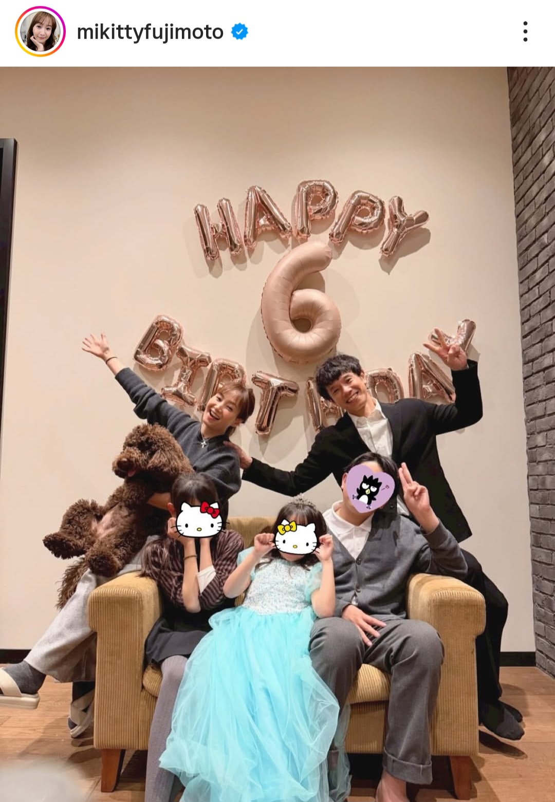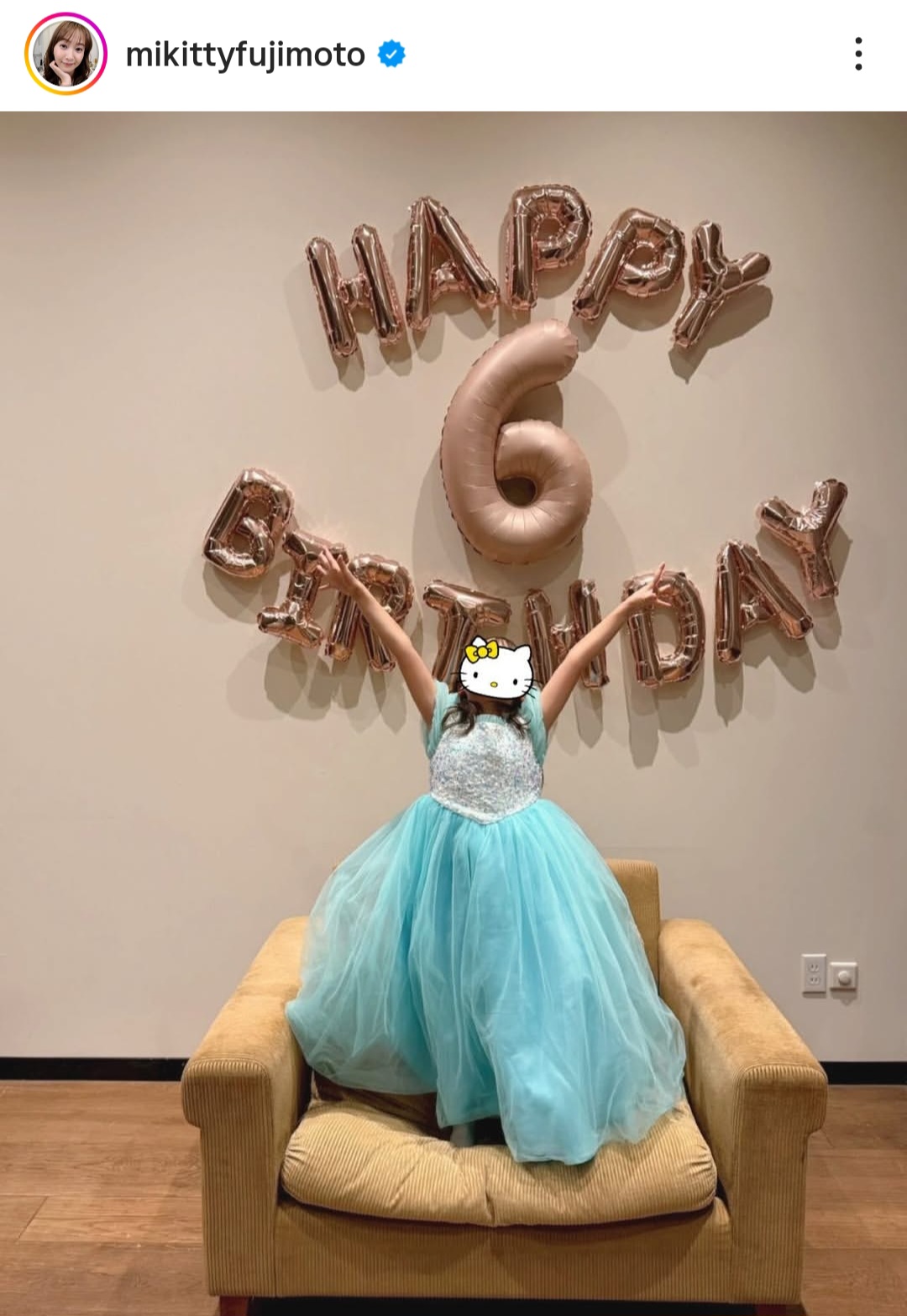 1月26日、藤本美貴がInstagramを更新。24日に次女が6歳の誕生日を迎えたことを受け、お祝いショットを公開した。